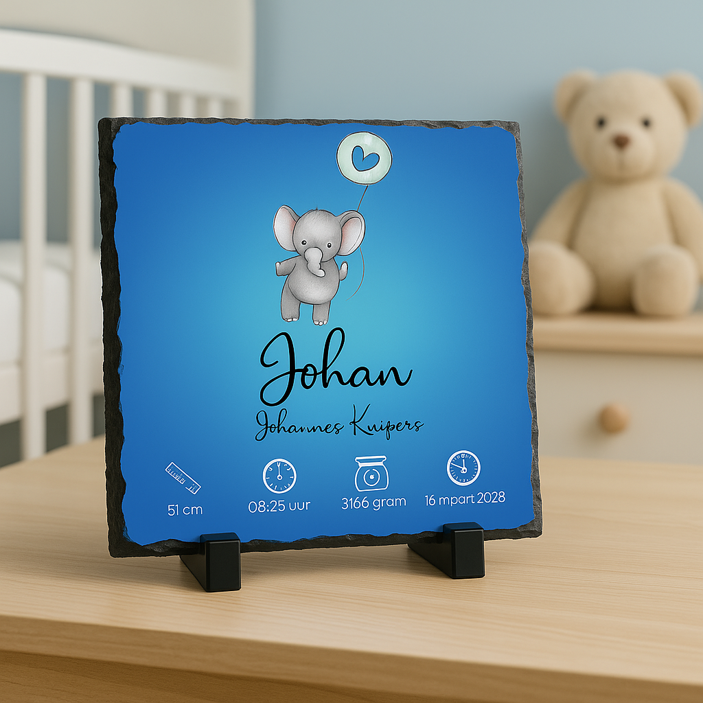 Vier de geboorte van je kleintje op een unieke manier met deze prachtige geboortetegel op natuurlijke leisteen! Een blijvende herinnering die je volledig persoonlijk kunt laten ontwerpen. Perfect om op de babykamer te zetten of cadeau te geven aan kersverse ouders.